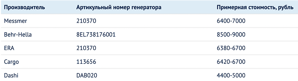 Проблема оригинальной запчасти в том, что её цена может составлять порядка 10-15 тысяч рублей. Есть и подержанные, но оригинальные агрегаты. Их цена в районе 2-4 тысяч рублей. Но на практике это не лучшее решение. Определить, какой ресурс остался в запасе у такого генератора, невозможно.