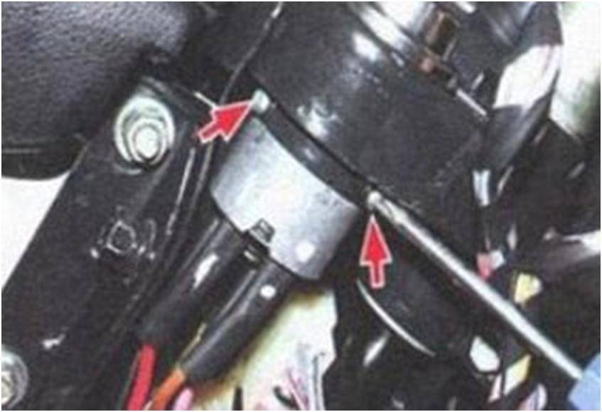 Если вы хотите вытащить замок запуска двигателя, не меняя личинки или до её замены, открутите сначала болты, которые крепят отключение зажигания.