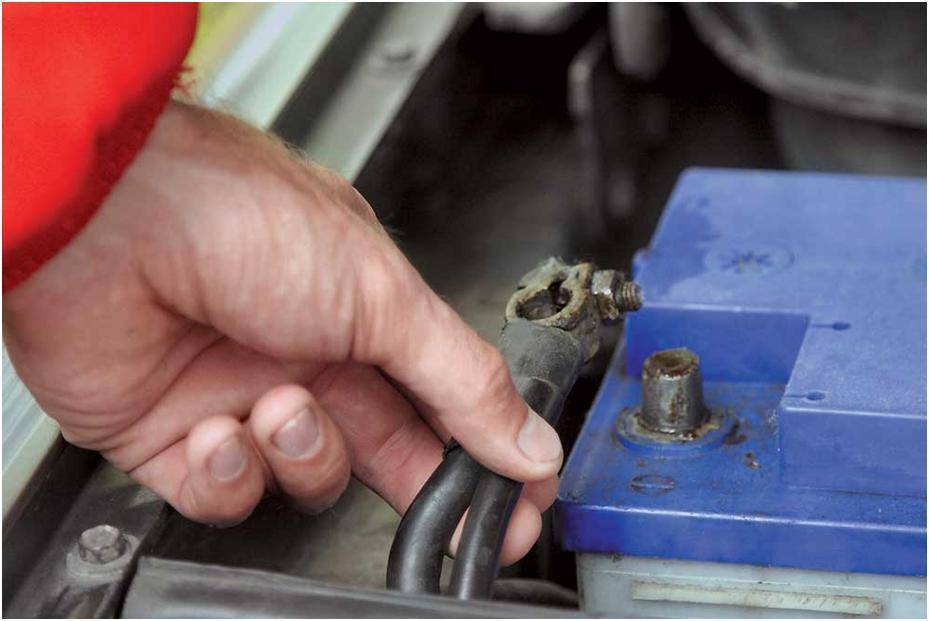 1. Отсоедините клемму провода от «минусового» вывода аккумуляторной батареи.