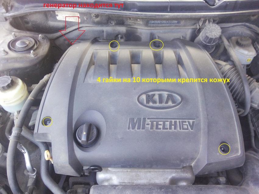 - Открутить торцовым ключом на 10 четыре гайки и снять декоративный кожух двигателя.
