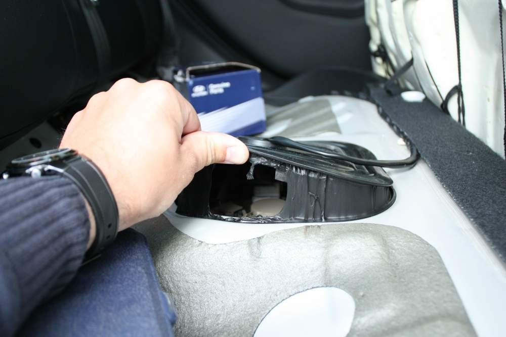 - Открывшийся лючок топливного насоса откручиваем и снимаем.
