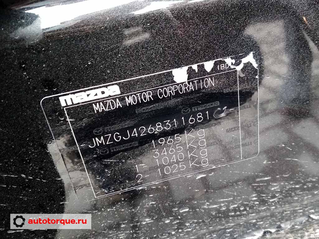 Заводская табличка на Mazda 6 1 поколение