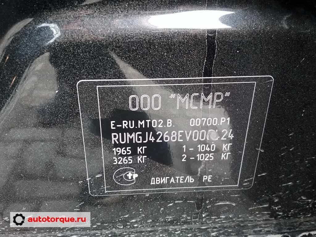| Табличка с идентификационным номером автомобиля находится в проеме двери на стойке. Кроме номера VIN, на ней также указаны дополнительные данные об автомобиле: 1 — идентификационный номер автомобиля VIN; 2 — разрешённая максимальная масса, кг; 3 — разрешённая максимальная масса автомобиля с прицепом, кг; 4 — максимальная нагрузка на переднюю ось, кг; 5 — максимальная нагрузка на заднюю ось, кг Десятый знак VIN обозначает код модельного года выпуска автомобиля |