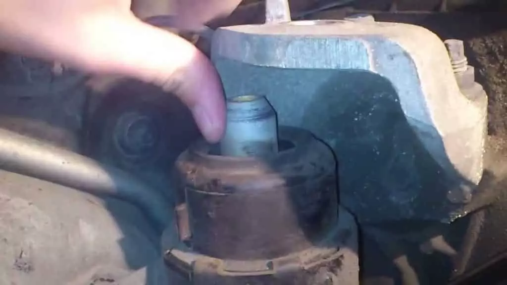 Более сложный метод — поднять двигатель и ослабить болт опорной тяги двигателя. Рабочее состояние, когда шток стоит на месте, без люфта. Если у штанги явный люфт, вердикт однозначен: заменить подушку.