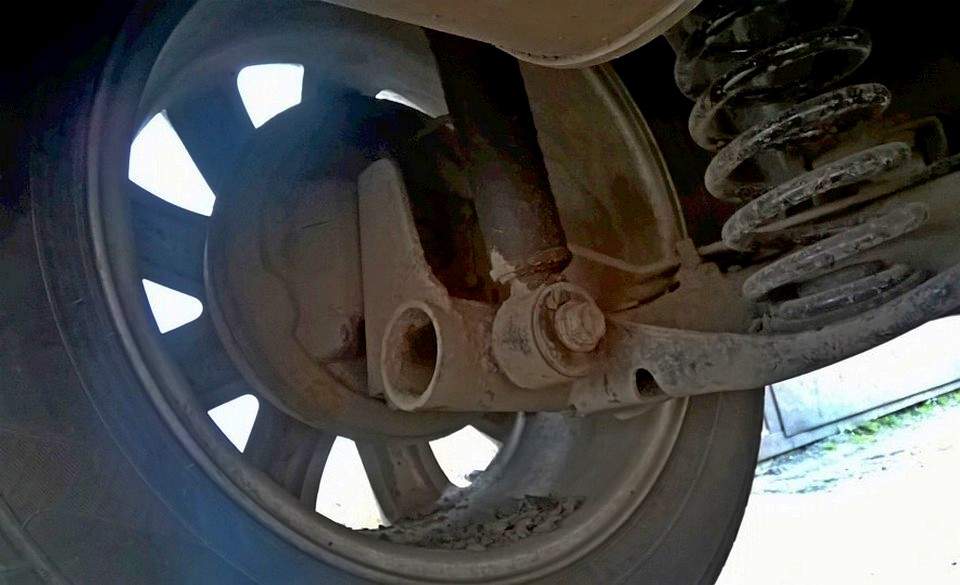… и затем окончательно снимаем нижний рычаг в сборе. Затем удаляем старый рычаг в отходы, поскольку новый рычаг поставляется в сборе с новой шаровой опорой и сайлент-блоками.
