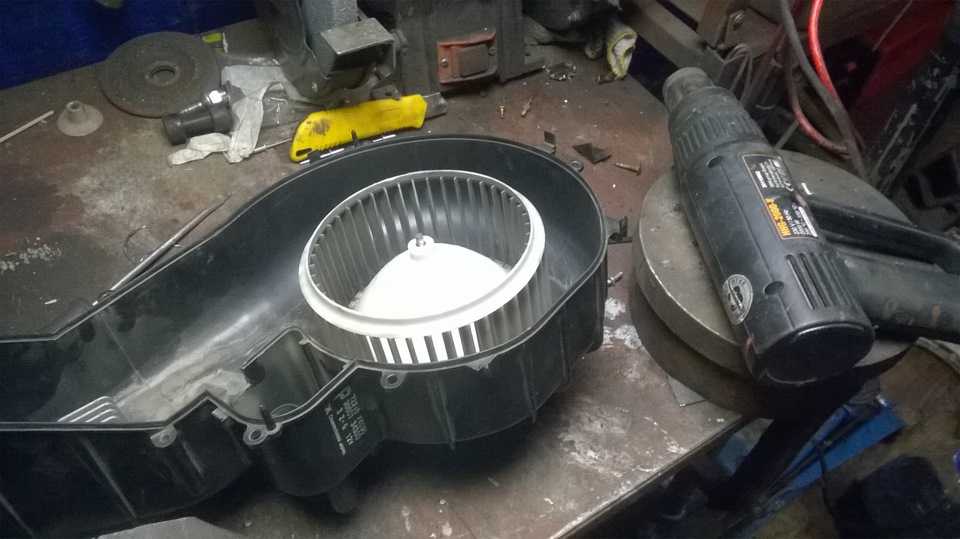 - Снимаем короб, приносим домой, разбираем. Снимаем крыльчатку. Моторчик в коробе впрессован в короб обдува.