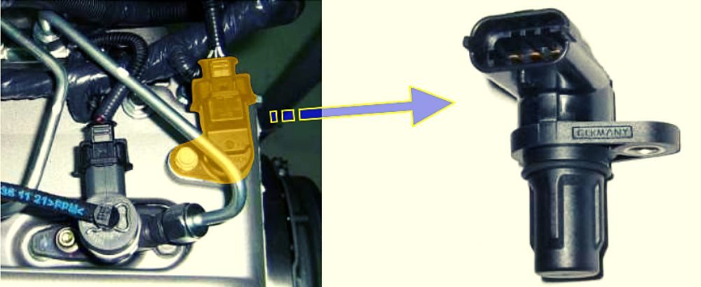 При этом блок управления использует сигналы датчика положения коленчатого вала. Однако, пуск двигателя после его остановки затруднен. Датчик подсоединен к контактам ЭБУ: А11 – 5 В, А50 – сигнал, А20 — масса.