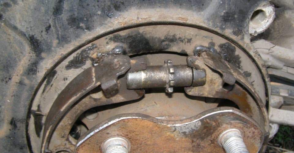 Отогните резиновые защитные крылышки и проверьте рабочий тормозной цилиндр на наличие повреждений и герметичность. Убедитесь, что оба поршня легко двигаются в цилиндре.