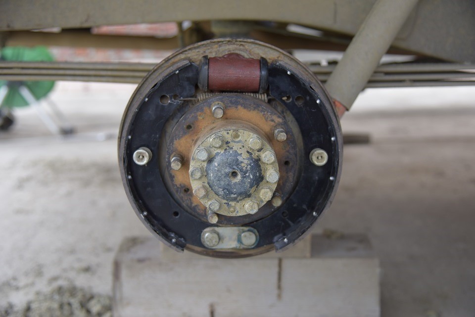 Нижние болты имеют эксцентрики, поэтому не только крепят колодки, но и меняют положение расходников. Регулировка осуществляется с тыльной стороны, перед тем как приступить к монтажу барабана.