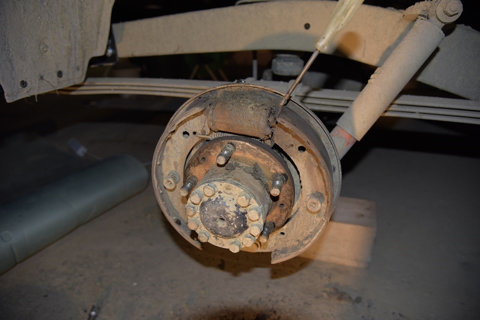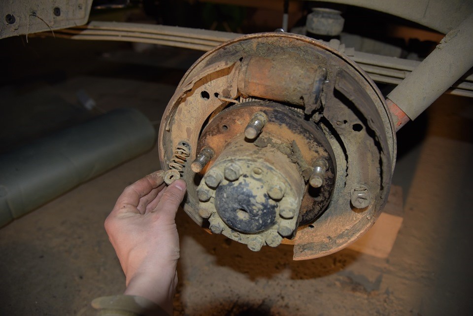 Для осмотра состояния деталей требуется поднять машину на домкрате, а затем снять задние колеса и чугунные барабаны.