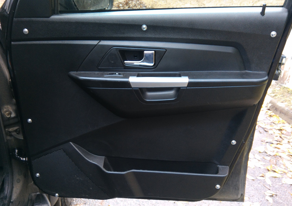 - На дверную карту устанавливаются динамики, выводится блок стеклодоводчика, если авто модернизировано под центральный замок, является основой для установки ручек и подлокотников.