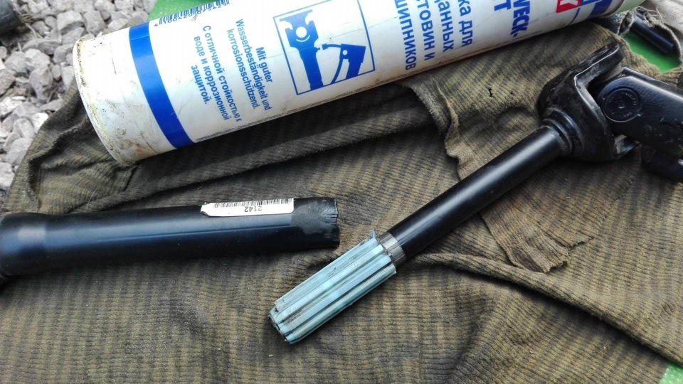 - Теперь смазываем шлицы литолом и собираем вал, предварительно надев на него приготовленный шланг, в результате чего шлицевое соединение окажется внутри шланга.