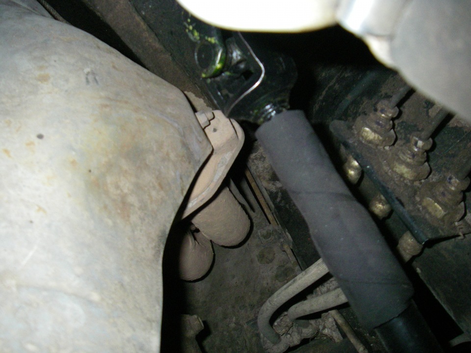 Сначала откручивается крепёжный болт кронштейна вала к лонжерону кузова.