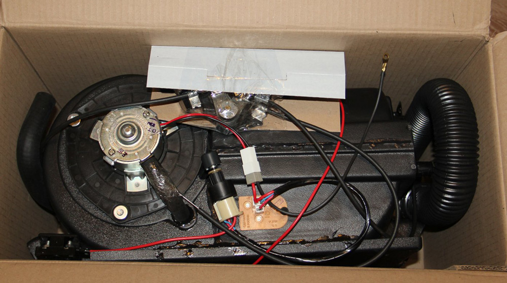 Её основным узлом стал радиатор печки, смонтированный под центральной консолью и заключённый в пластиковый корпус достаточно сложной геометрии. Связь между системами охлаждения и отопления осуществляется посредством резиновых шлангов, в качестве разделительных элементов используются заслонки и кран.