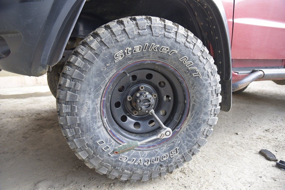 Поддомкратить автомобиль, подставить подпорку и демонтировать колесо.