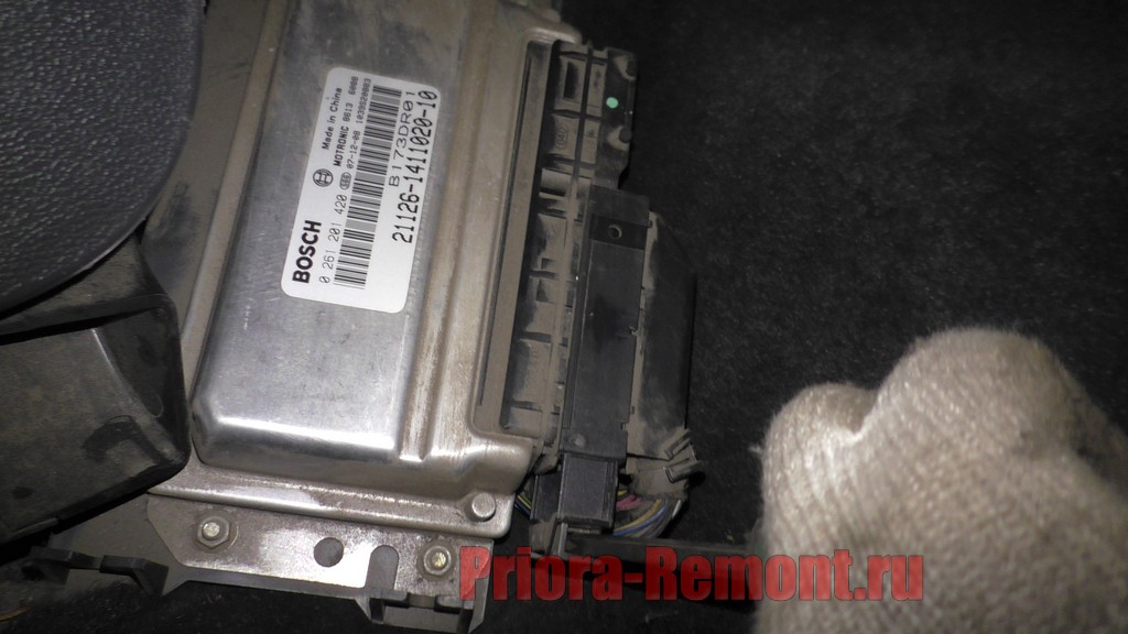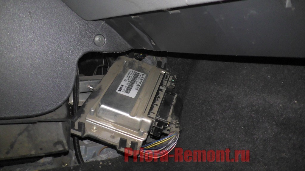 Теперь вытаскиваем блок управления двигателем Приоры на себя, чтобы можно было проводить дальнейшие действия.