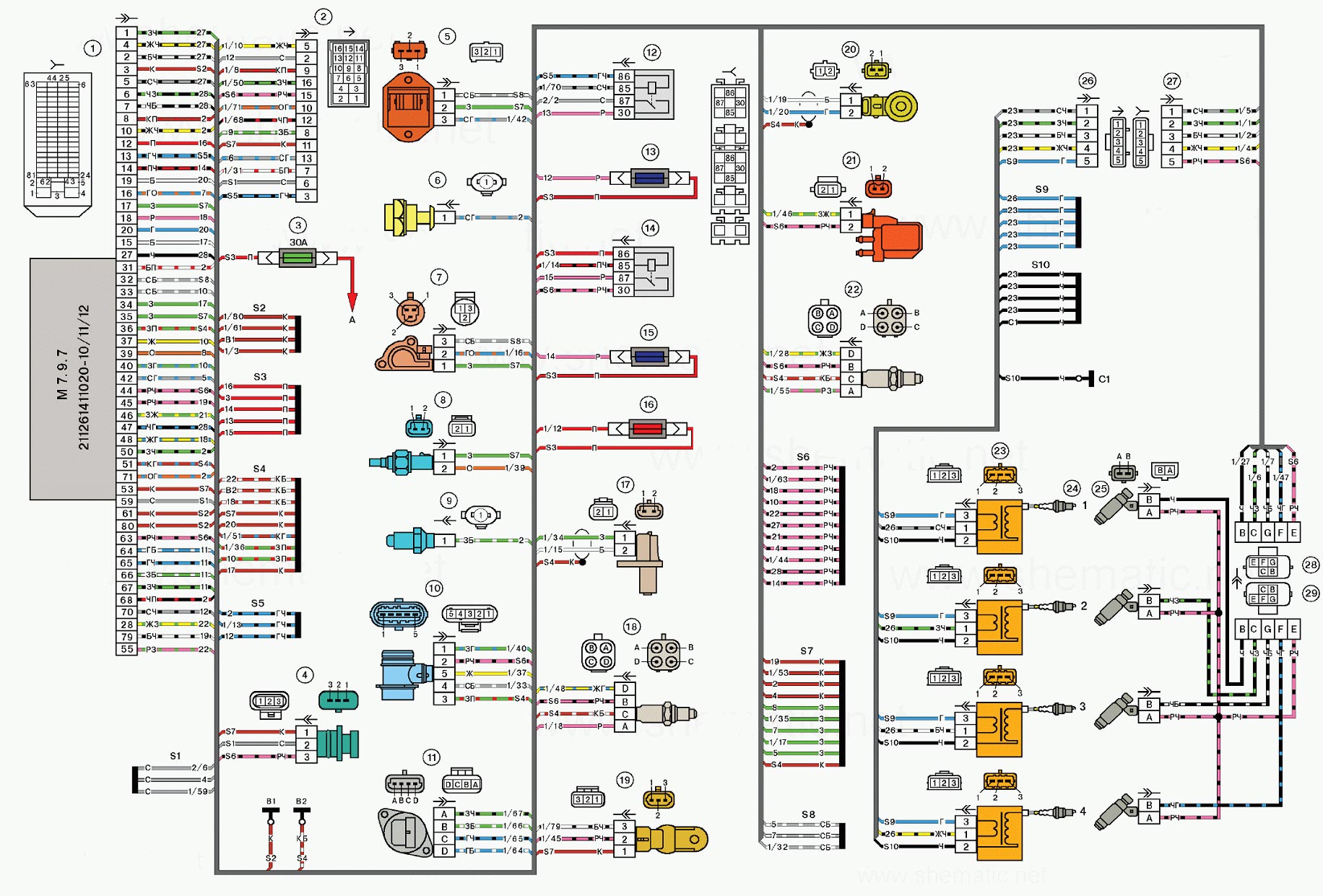 - 26 – клемма от катушек зажигания к ЭСУД;