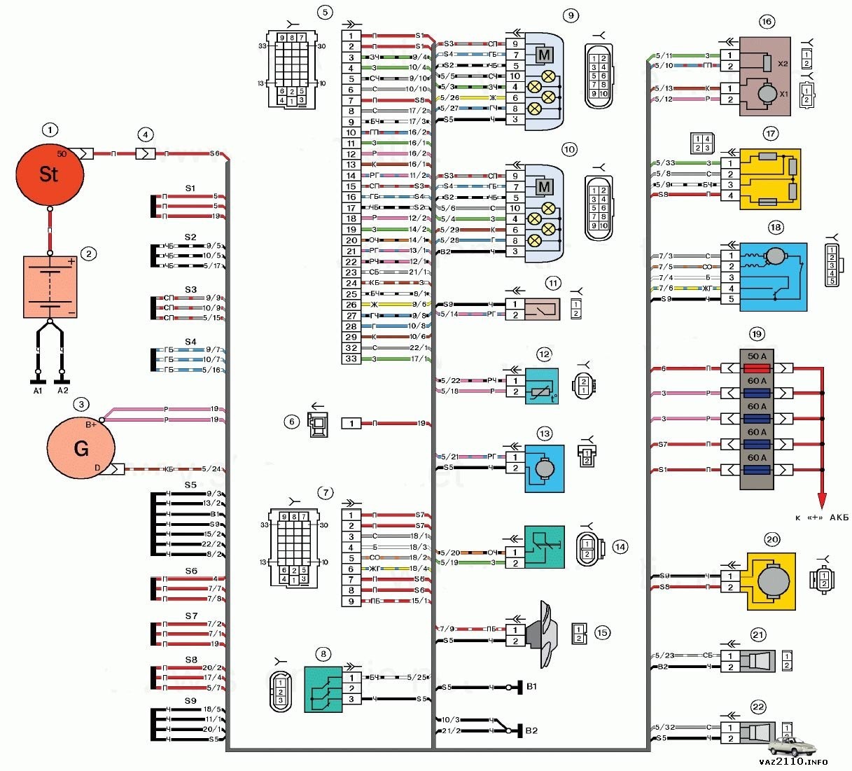 Стандартная система подключения электрической цепи(распиновка) выглядит таким образом: