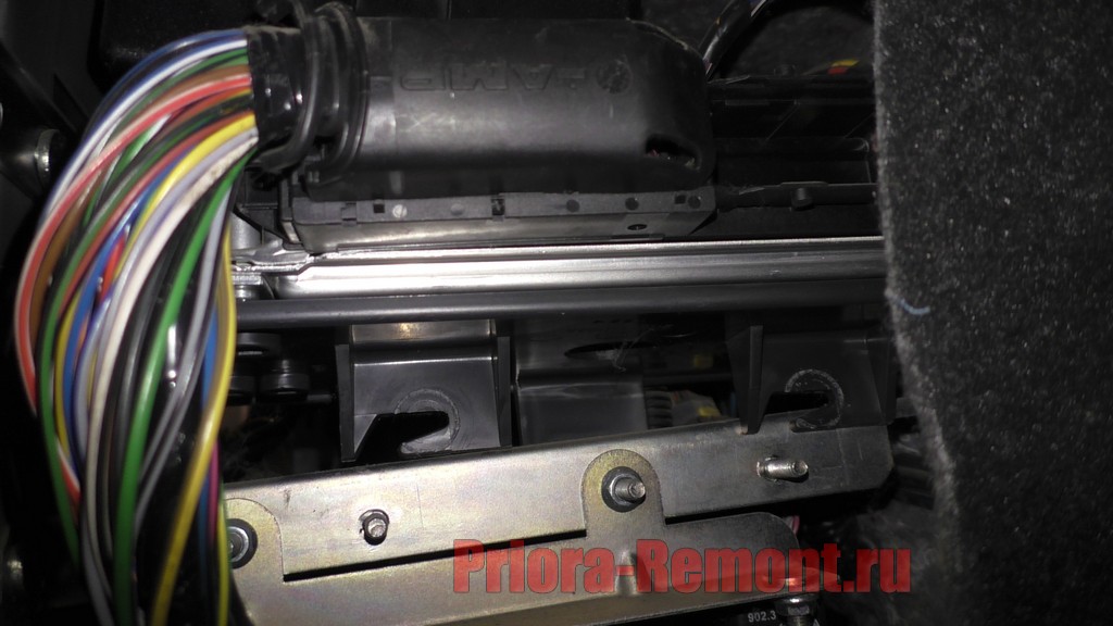 Новый контроллер устанавливается в обратном порядке снятию, но при установке есть кой какие нюансы, во-первых иммобилайзер (Это только к новому блоку управления относиться, поэтому если вы его не меняете то ничего вам делать не нужно) если он у вас не отключен переобучать придётся (О том как это сделать, читайте в статье: «Обучение иммобилайзера на ВАЗ»), а во-вторых устанавливать если соберётесь на то же место контроллер (Что мы вам не советуем), то следите за тем чтобы кронштейны контроллера вошли (Указаны красными стрелками кронштейны, на фото отопитель кстати снят для наглядности с автомобиля) ровно в направляющие корпуса отопителя.