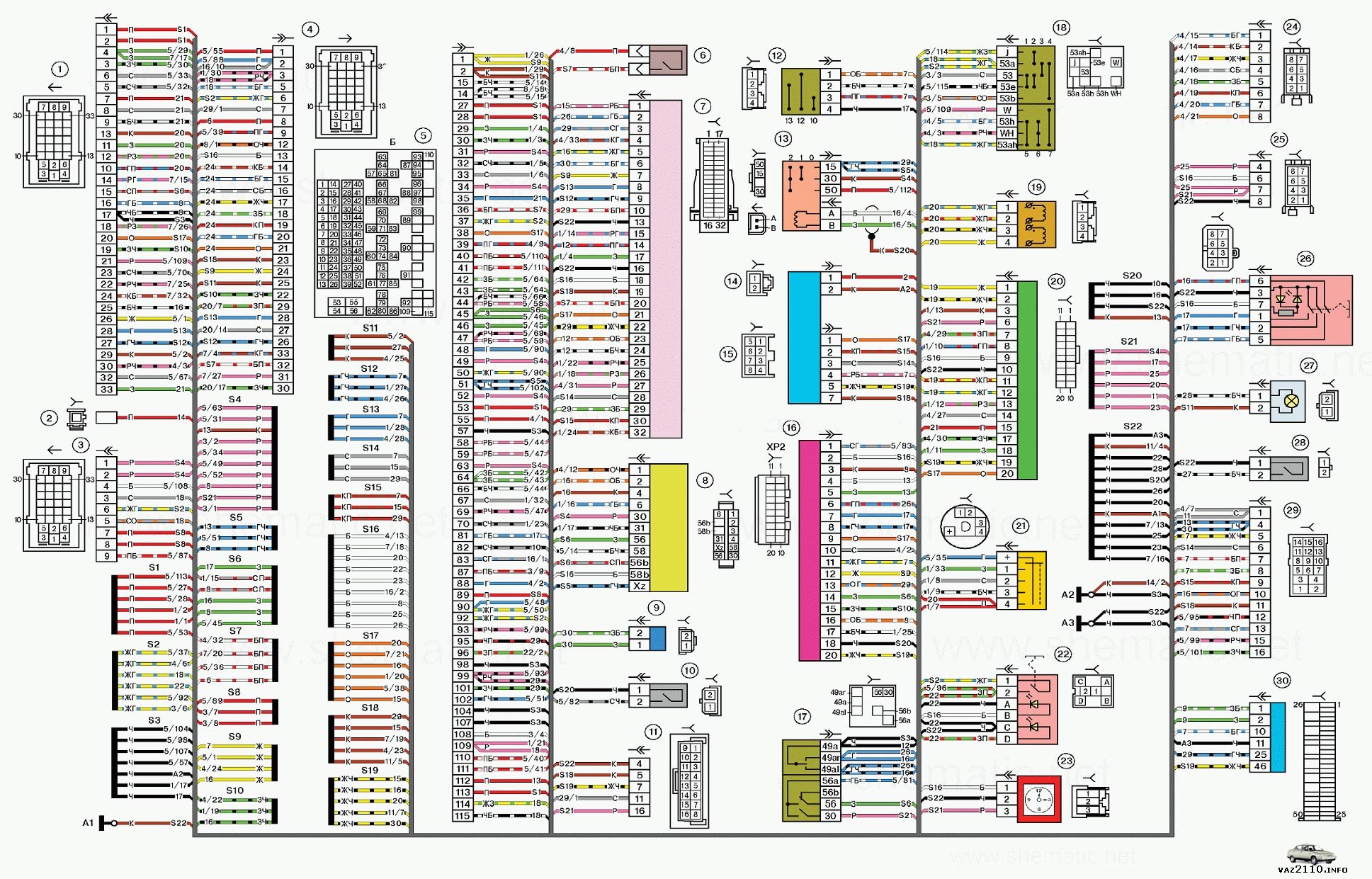 Список приборов, которые включает дополнительная электросхема ВАЗ, шире, чем основной. К вспомогательной схеме относятся ряд элементов.