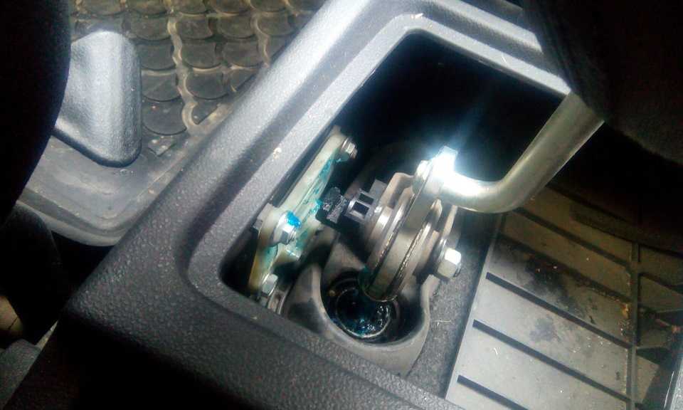 На старом автомобиле лучше заранее смазать проникающим составом узел крепления кулисы.