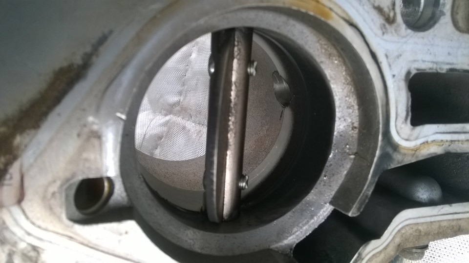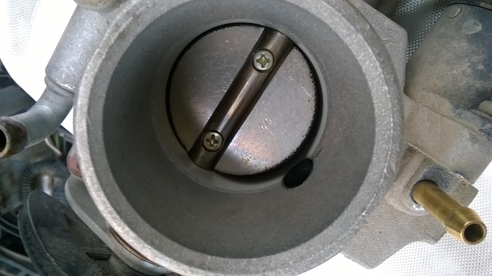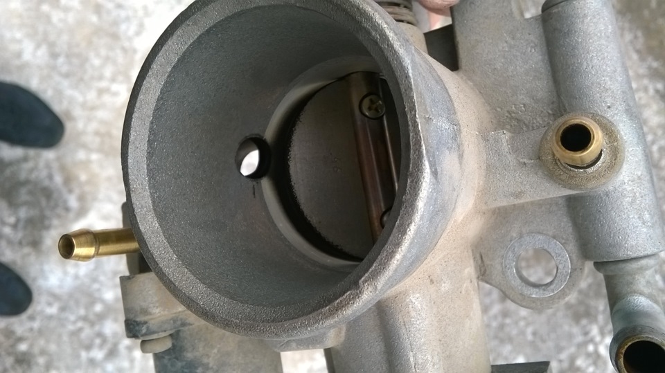 Сама дроссельная заслонка сидит на двух шпильках — тем самым ключом на 13″ откручиваем две гайки и спокойно снимаем дроссель. Такое состояние у моего дросселя за 66 т.км: