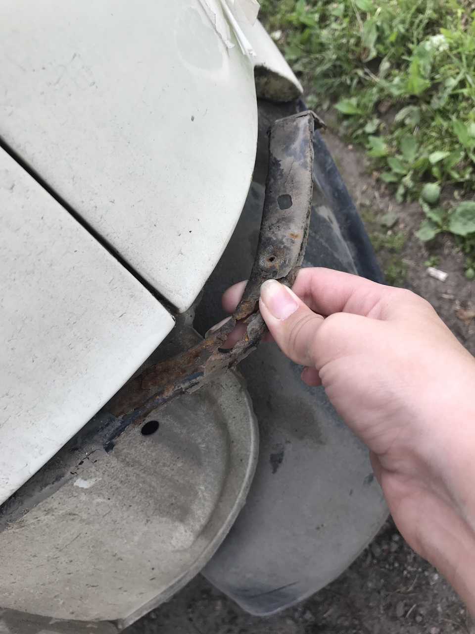 Чтоб вернуть бампер на место, нужно было заменить эти уши, в местах соединения там одно большое отверстие, которое крошится и рассыпается.