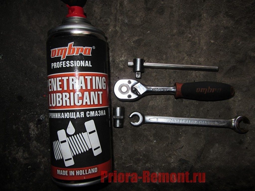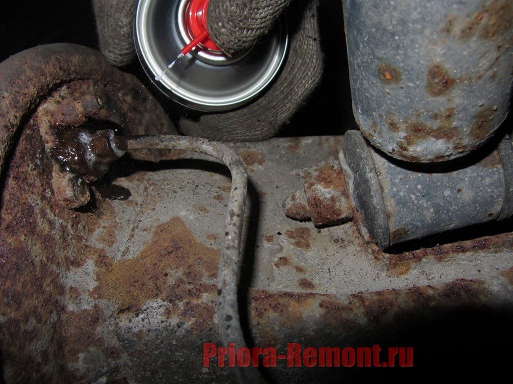 Далее можно приступать к работе. Первым делом наносим проникающую смазку на все резьбовые соединение, которые в последствии будем откручивать.