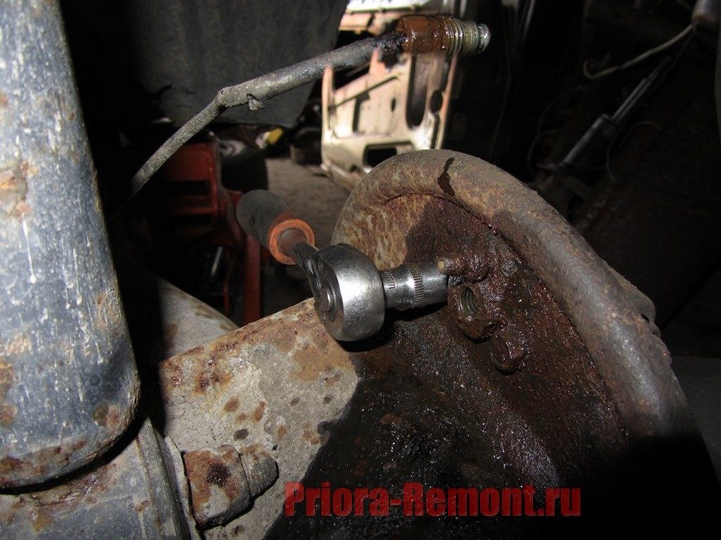 6. Специальным ключом на 10 мм ослабляем затяжку штуцера тормозной трубки.