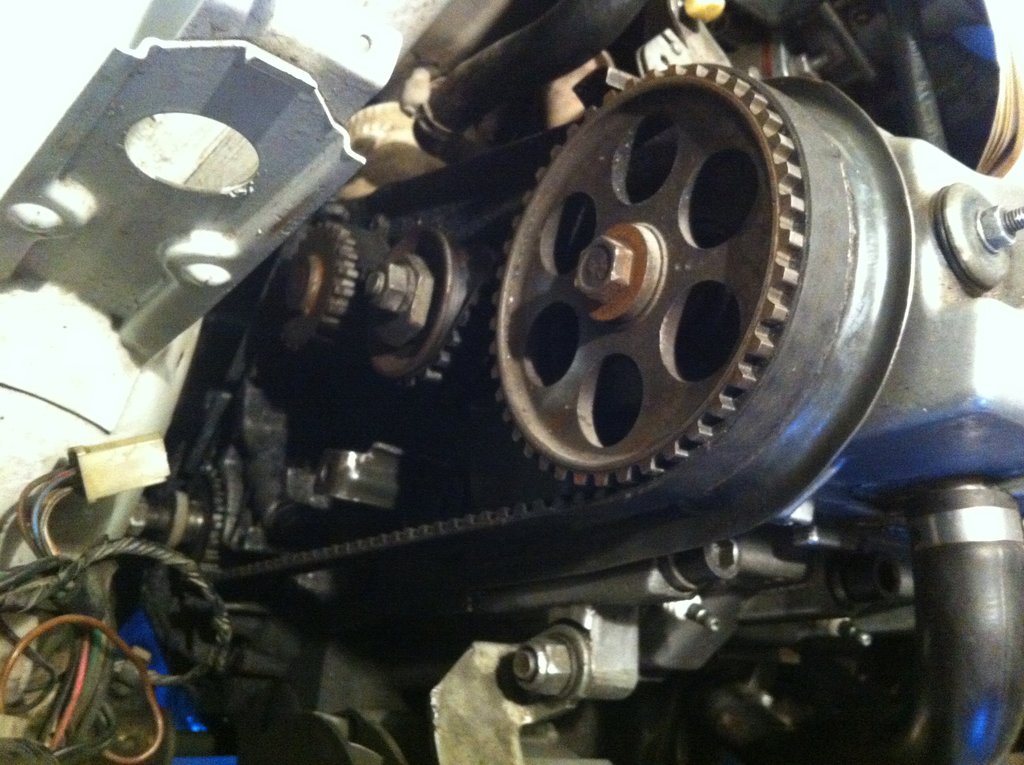Клапаны управляются распределительным валом. Он расположен над клапанами и вращается коленчатым валом с помощью зубчатого ремня, который также приводит в действие водяной насос (помпу).