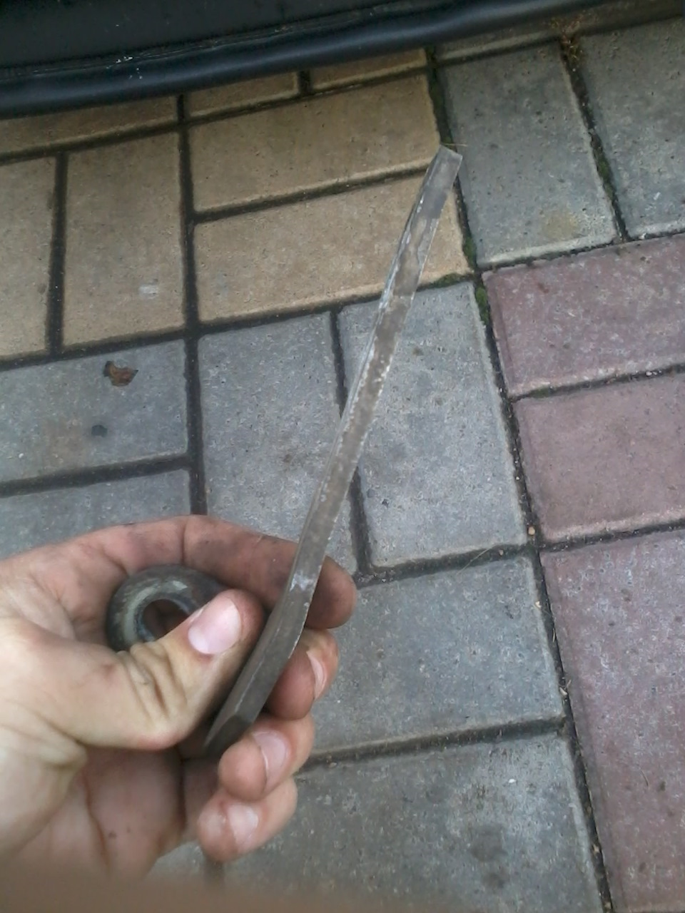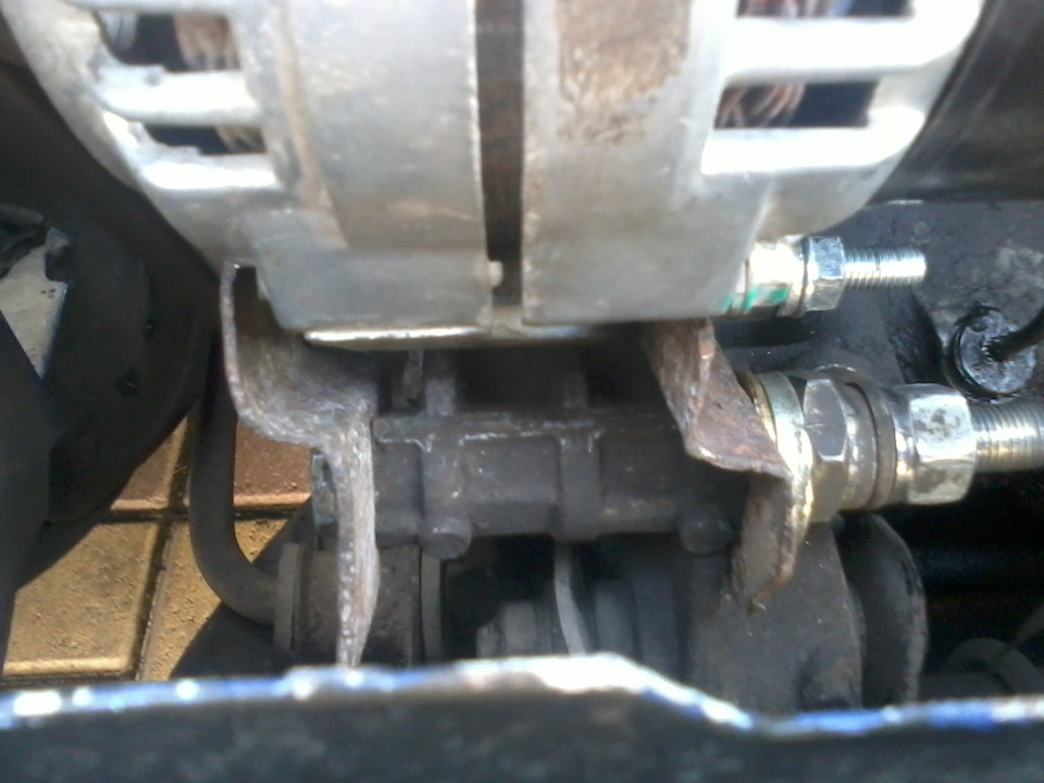 Вот тут началось самое интересное. Генератор стал на нижнее крепление и, как оказалось, верхнее крепление было ближе к двигателю, хотя генератор такой же. Пришлось делать верхнее крепление.Так как крепление генератора было прямо под болтиком, к которому крепится верхнее крепление генератора и ремень в таком положении был натянут, то я взял планочку, которая прикручивалась с креплением к двигателю (честно не знаю зачем она нужна) и сточил её как на фото.