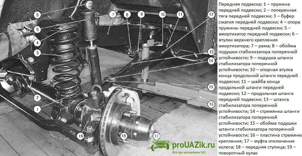 Устройство передней подвески уаз