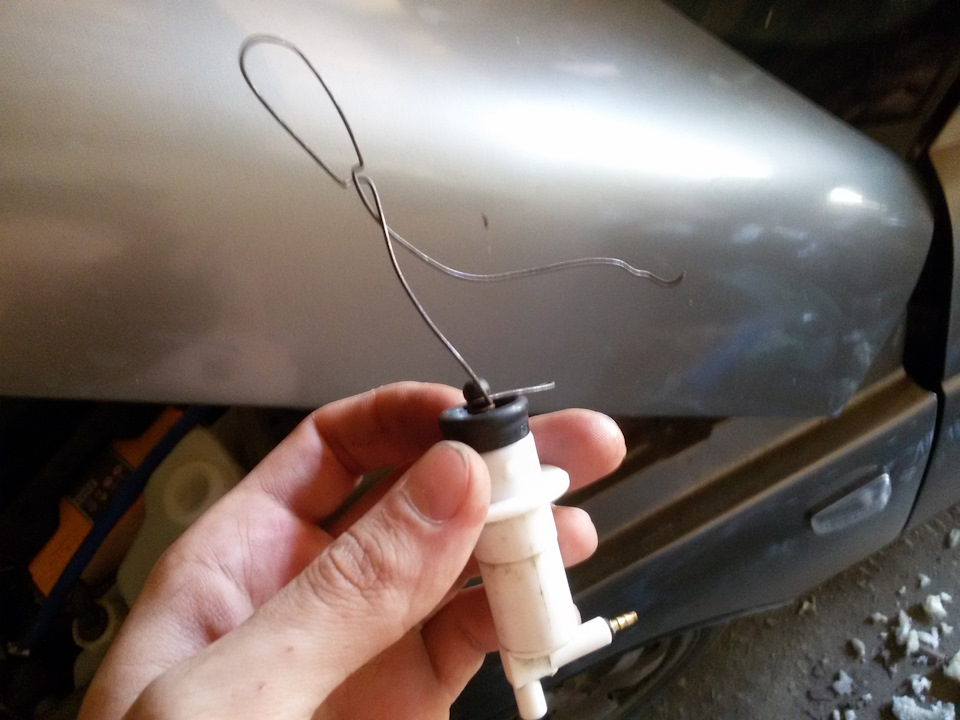 Инструменты: кусачки, кусочек проволоки, крышка антифриза и любой шприц. Это всё, что понадобится для нашего ремонта. Для начала вертушку слева от нашего руля переводим в позицию номер “0”, затем откусываем трубку прямо около гидрокорректора и снимаем кусочек со штуцера.