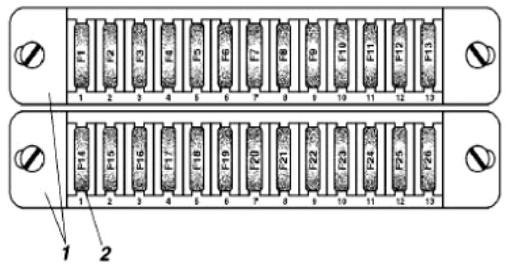 Два блока предохранителей (рис. 2), имеющих по тринадцать плавких вставок, размещены под панелью приборов слева от рулевой колонки.